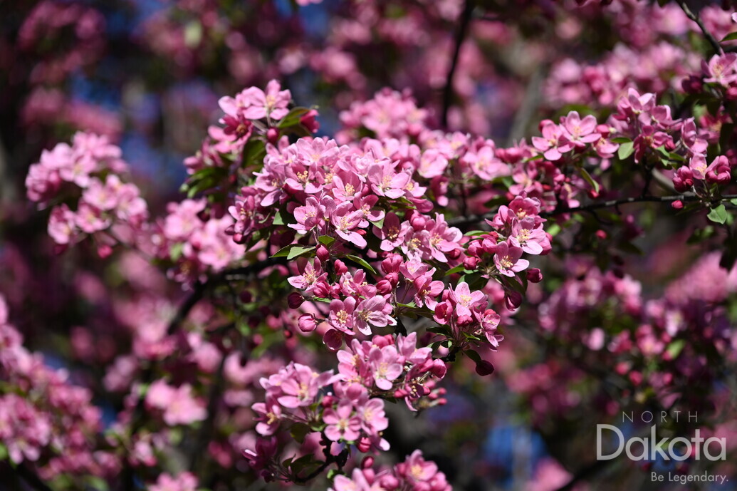 - Description: Apple trees are in full bloom on a beautiful sunny spring day