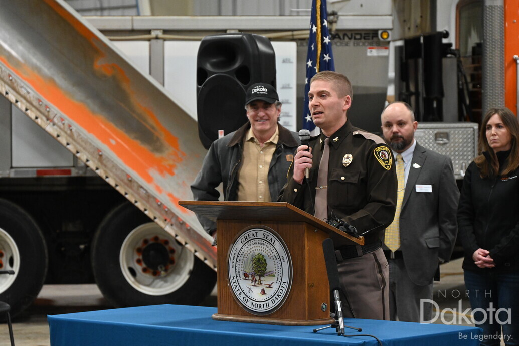 - Description: Governor Doug Burgum with NDDOT Director Ron Henke , HP Colonel Brandon...