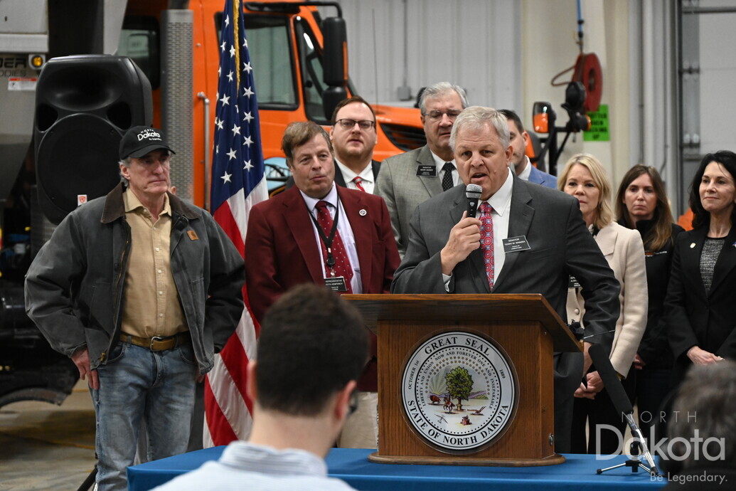 - Description: Governor Doug Burgum with NDDOT Director Ron Henke , HP Colonel Brandon...