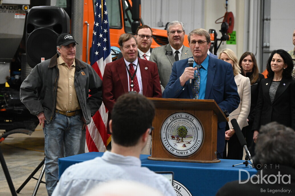- Description: Governor Doug Burgum with NDDOT Director Ron Henke , HP Colonel Brandon...