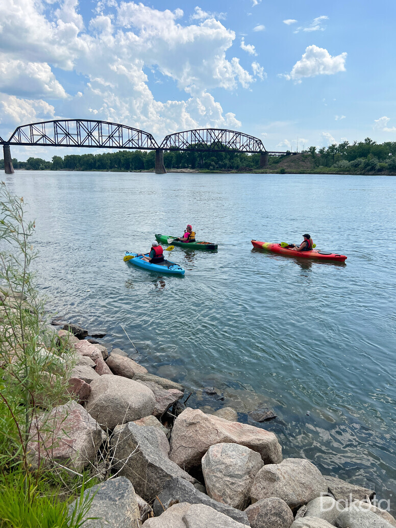 Kayaking, kayaks, river, water, water recreation, Missouri River, Bismarck, Mandan, outdoor, outdoor recreation, tour, bridge, historic bridge