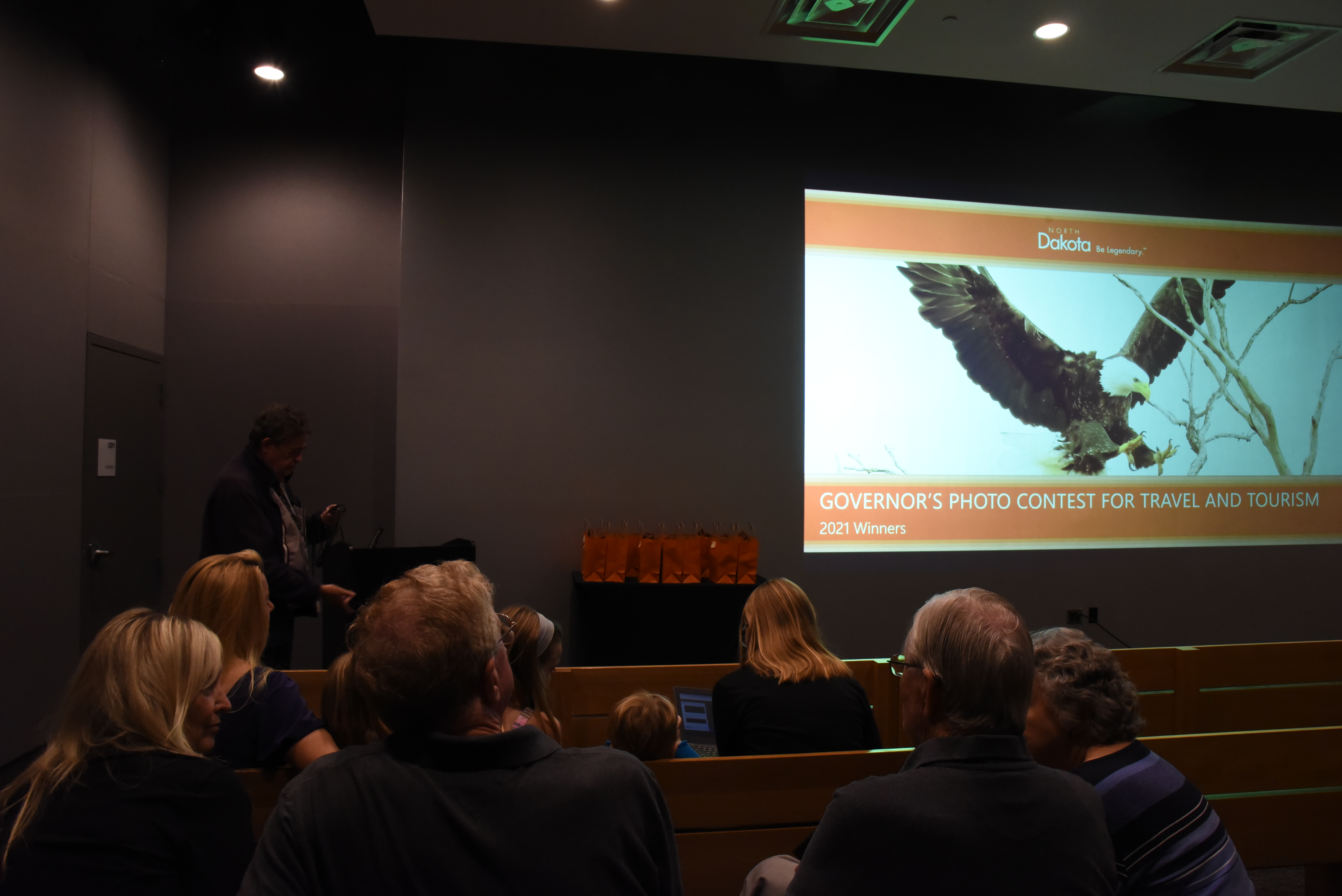 | Description: | Governor Burgum, Sara Otte Coleman and Kim Konikow present the awards for the 18th Governor's Photo Contest for Travel and Tourism. |